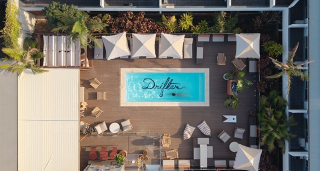 Drifter Byron Bay features 52 rooms – both shared and private suites, most of which have balconies – a communal space for dining, games and movie screenings, a communal kitchen, open reception with lounge and workspaces, and a 7-metre rooftop pool with a dedicated poolside DJ booth.